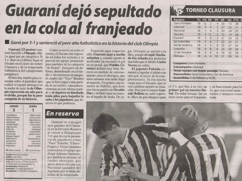 Ganamos todos los partidos siguientes al receso a excepción de 2 empates. El equipo obtuvo la 4ta posición ganándole a Olimpia (el equipo grande de Paraguay) en la última fecha 3-1.