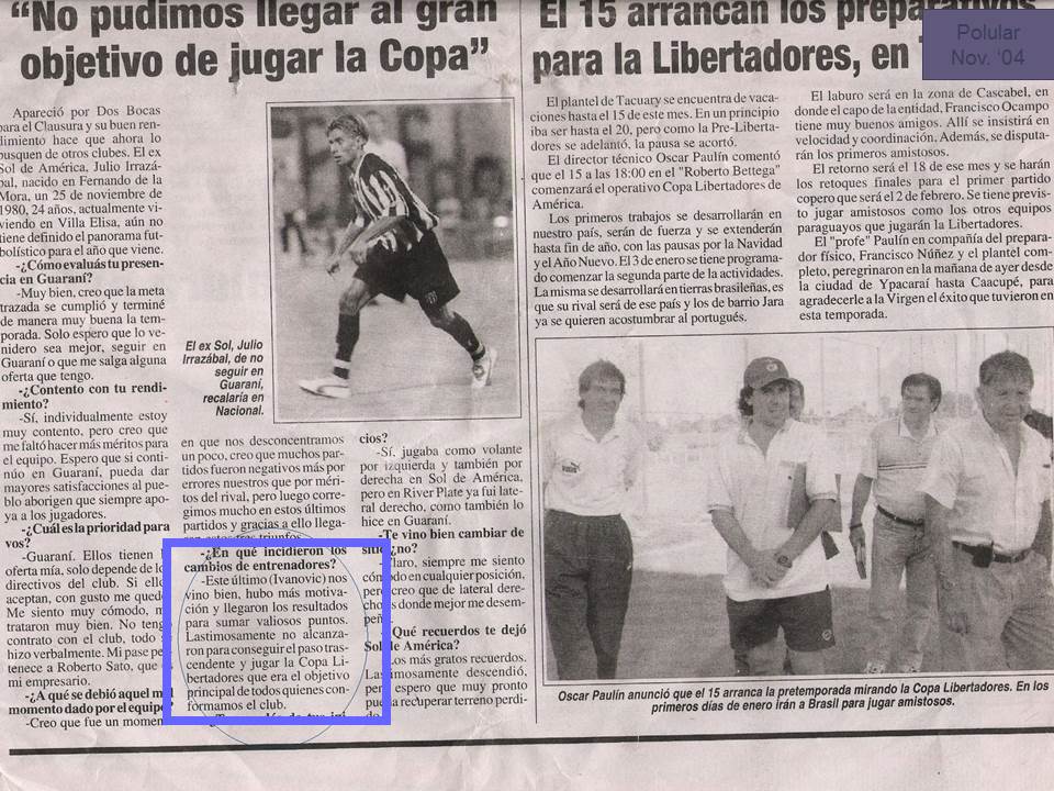 Cuatro jugadores (Aureliano Torres, Julio Manzur, Pedro Ayala y Edgar Gonazalez) fueron llamados a la Selección Nacional Paraguaya que comenzó a dirigir el Tata Martino en enero de ese año.