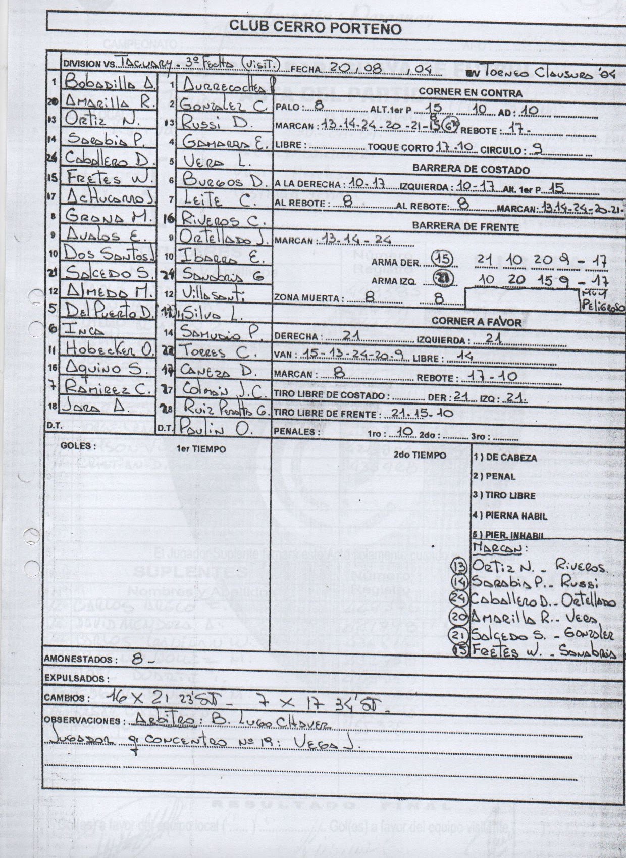 Jugadores, cambios, tiempo jugado de cada uno, jugadas de córner, de tiro libre a favor y en contra, esquema defensivo, esquema ofensivo. Todo, no faltaba nada.
